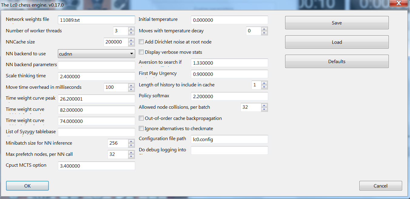 •We choose the Lc0.exe and press PARAMETER.