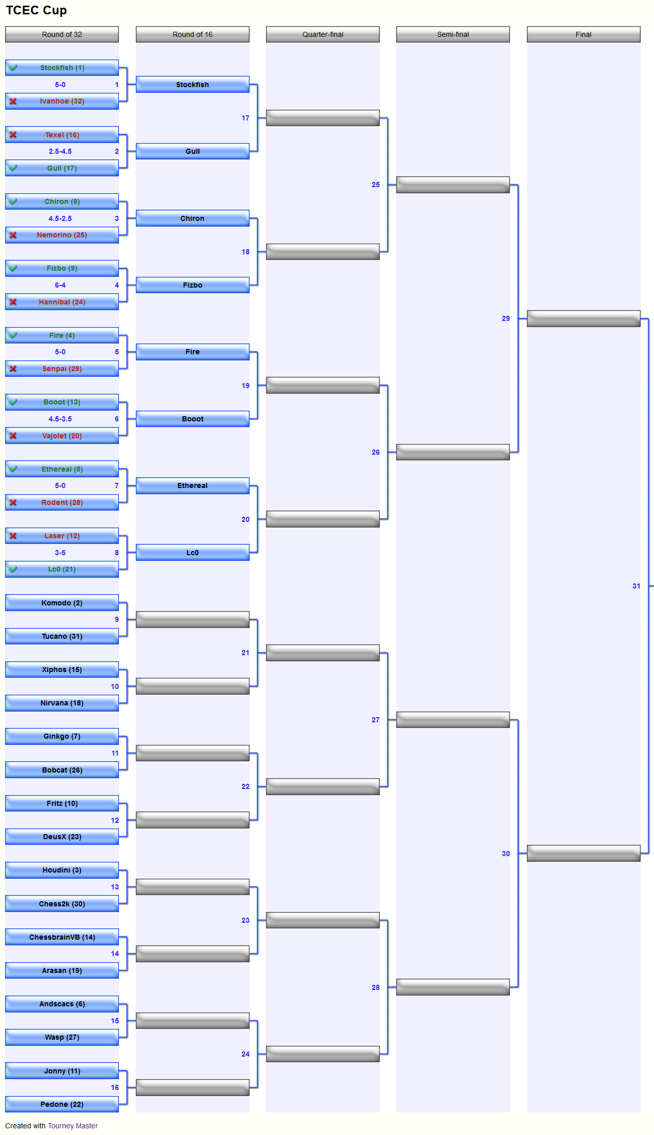 Leela promotes to round of 16 in TCEC Cup with 2 nice wins!