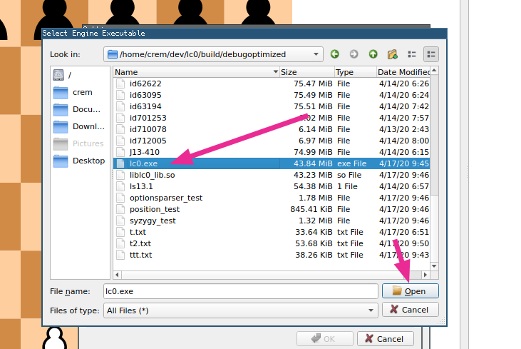1. In the “Select Engine Executable” dialog, find and select your lc0.exe file.