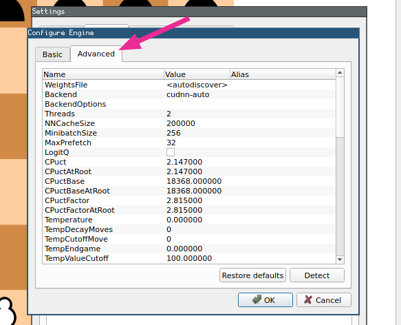 1. (optional) If you’d like to tweak any engine parameters, go to “Advanced” tab and do it there.